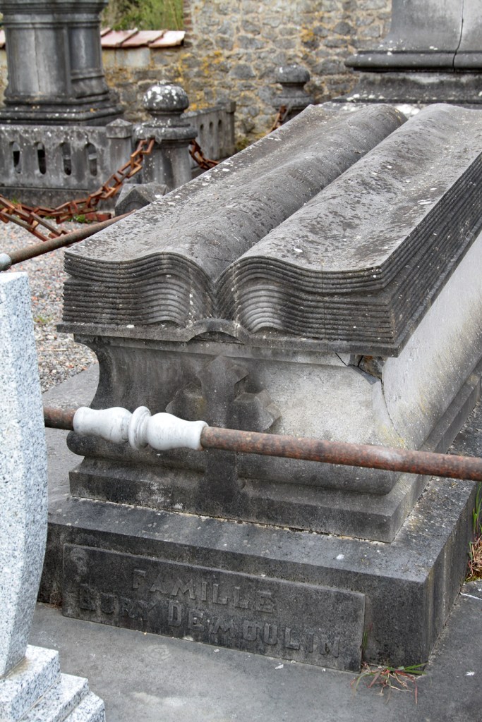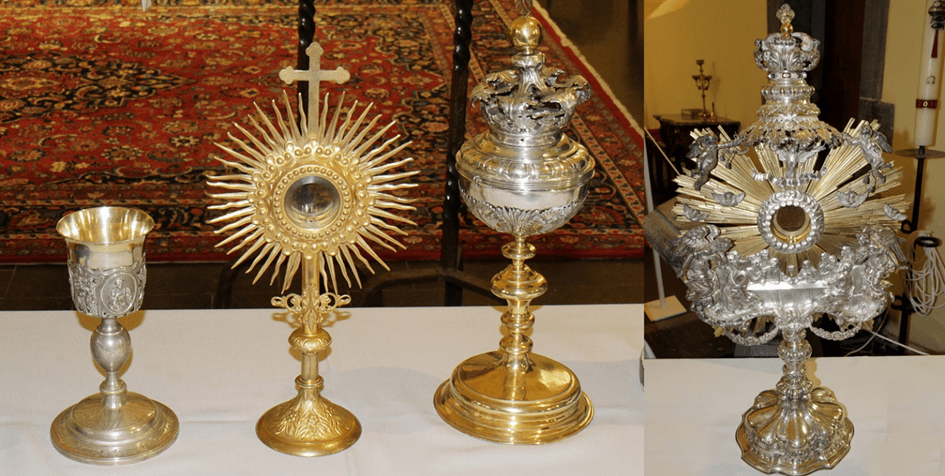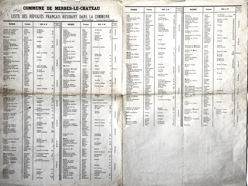 2. Au début des hostilités, pour sauvegarder les objets du culte, le conseil de fabrique décide de les transporter chez Mr Bury Demoulin, industriel : ostensoir, calices, ciboires, reliques, archives de fabrique, budgets et comptes depuis 1830, registres, etc…tout y a été déposé en confiance et a échappé ainsi au pillage et à l’incendie, comme on le verra dans la suite.