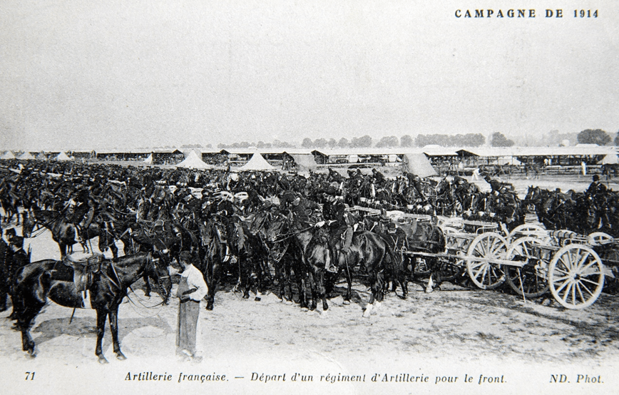 Depuis 1870, l’Allemagne se préparait à reprendre les armes, elle n’attendait plus que le prétexte… C’est l’assassinat de l’archiduc François-Ferdinand neveu de François-Joseph par un nationaliste serbe, Gavrilo Princip, qui permit à l’Autriche de déclarer la guerre à la Serbie le 28 juillet 1914 après s’être assuré du soutien de l’Allemagne. Le 1er août, faisant suite à la mobilisation générale russe, l’Allemagne déclare la guerre à la Russie, alliée de la Serbie.