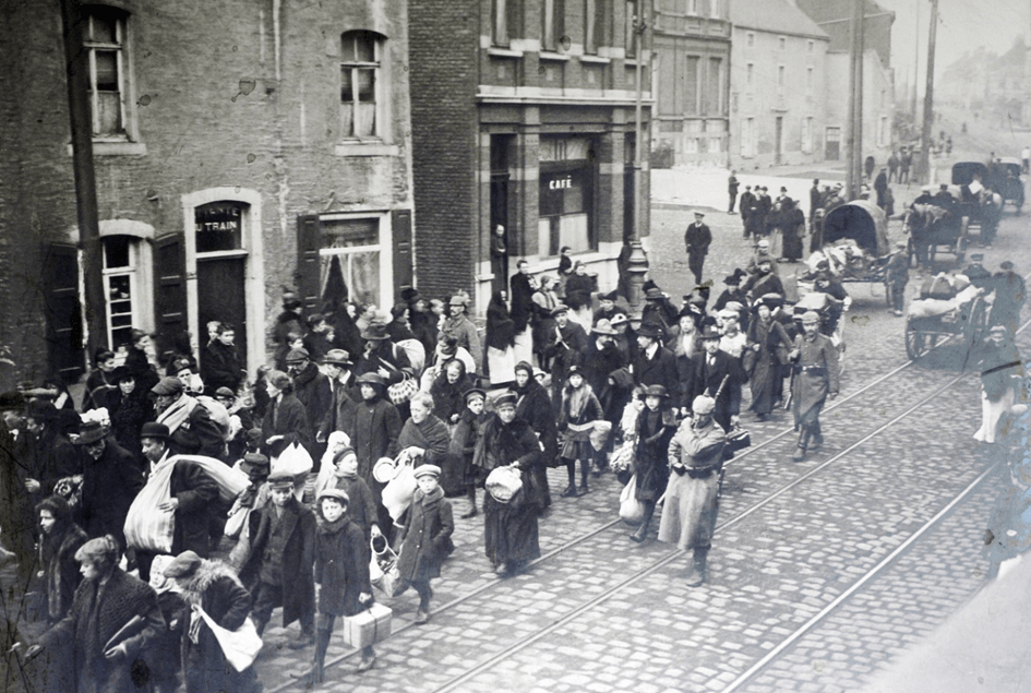 Le 2 août, la Belgique, pays neutre, reçoit de l’Allemagne, une demande d’autorisation de passage sur son territoire. Le 3 août, notre pays ayant refusé, malgré les dommages proposés, est envahi et voit l’Allemagne déclarer la guerre à la France. Le lendemain, la Grande Bretagne déclare la guerre à l’Allemagne. C’est le début de la Première guerre mondiale qui fera 10 millions de morts dans les armées engagées et 10 millions de morts parmi les vieillards, femmes et enfants. 21 millions de blessés viennent compléter ce triste tableau.