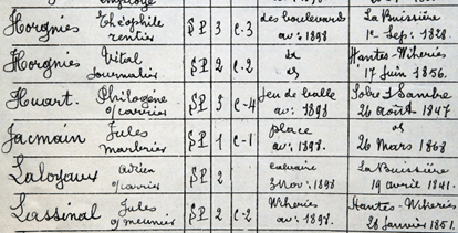 Journalier puis ouvrier d’usine. Déporté le 22 novembre 1916 à Guben. 11e groupe.
