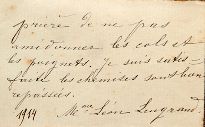 7 Août – Un appel téléphonique de France. Le maire de l’ile de Batz réclame sa fille et annonce « Qu’on dispose des draps et des serviettes en faveur des blessés ». Départ aussi des élèves irlandaises pour l’Angleterre via Ostende, s’il en est encore temps. Les autres pensionnaires restent. Nous espérons que les Allemands seront rejetés, sans retard, au-delà des frontières.