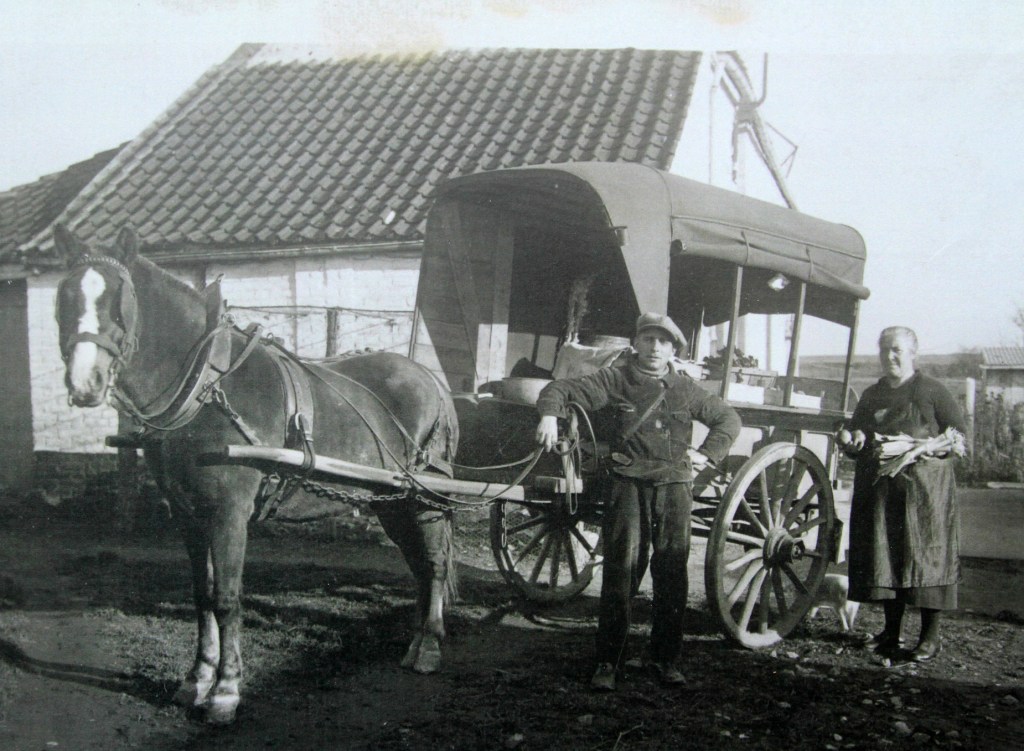 Alphonse Delville, maître-charron de profession était venu s’installer à Hantes en 1893 (il venait de Fontaine-Valmont) dans la maison qui aujourd’hui a donné le n° 1 de la rue du calvaire et le n° 4 de la rue de la Place Robaulx. Le charron, ou maître charron, était un artisan spécialiste du bois et du métal. Il concevait, fabriquait, entretenait ou adaptait, réparait les véhicules avant la motorisation, parmi lesquels les voitures communes de transport ou de charges et les engins agricoles et artisanaux.