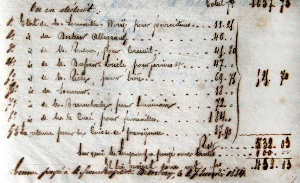 Que, ceux-ci, vu l’attitude scandaleuse du curé, ont été effectuées par la commune dont coût 180 francs.