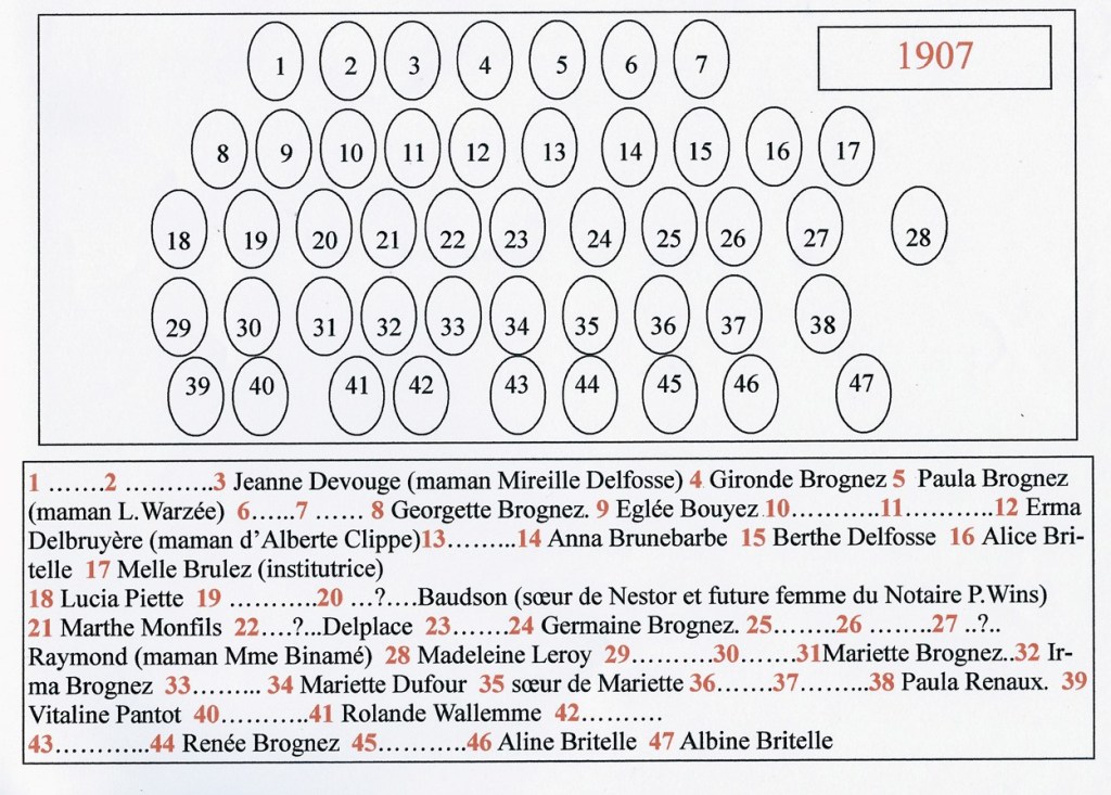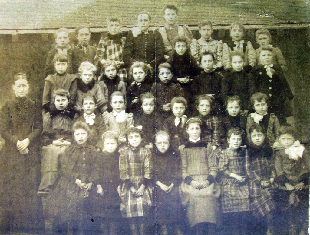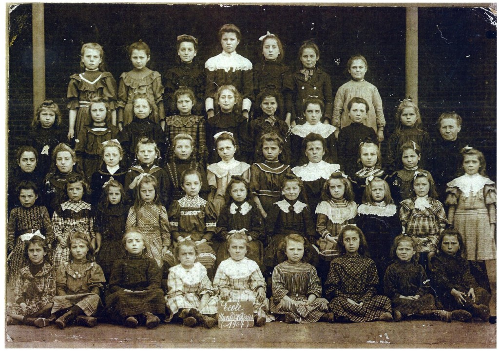 La classe des filles de primaire en 1907 avec l’institutrice Melle Octavie Brulez