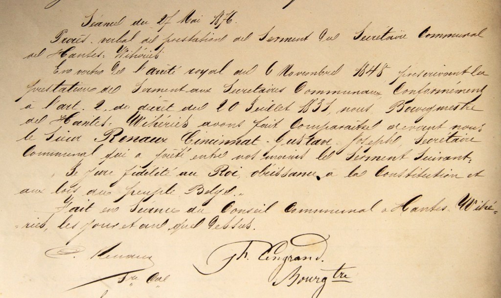 Edmond Lacroix fut également remplacé dans ses fonctions de secrétaire communal. C’est Cincinnat Renaux âgé de 24 ans et domicilié à Hantes-Wihéries qui fut élu par six suffrages sur 6 votants.
